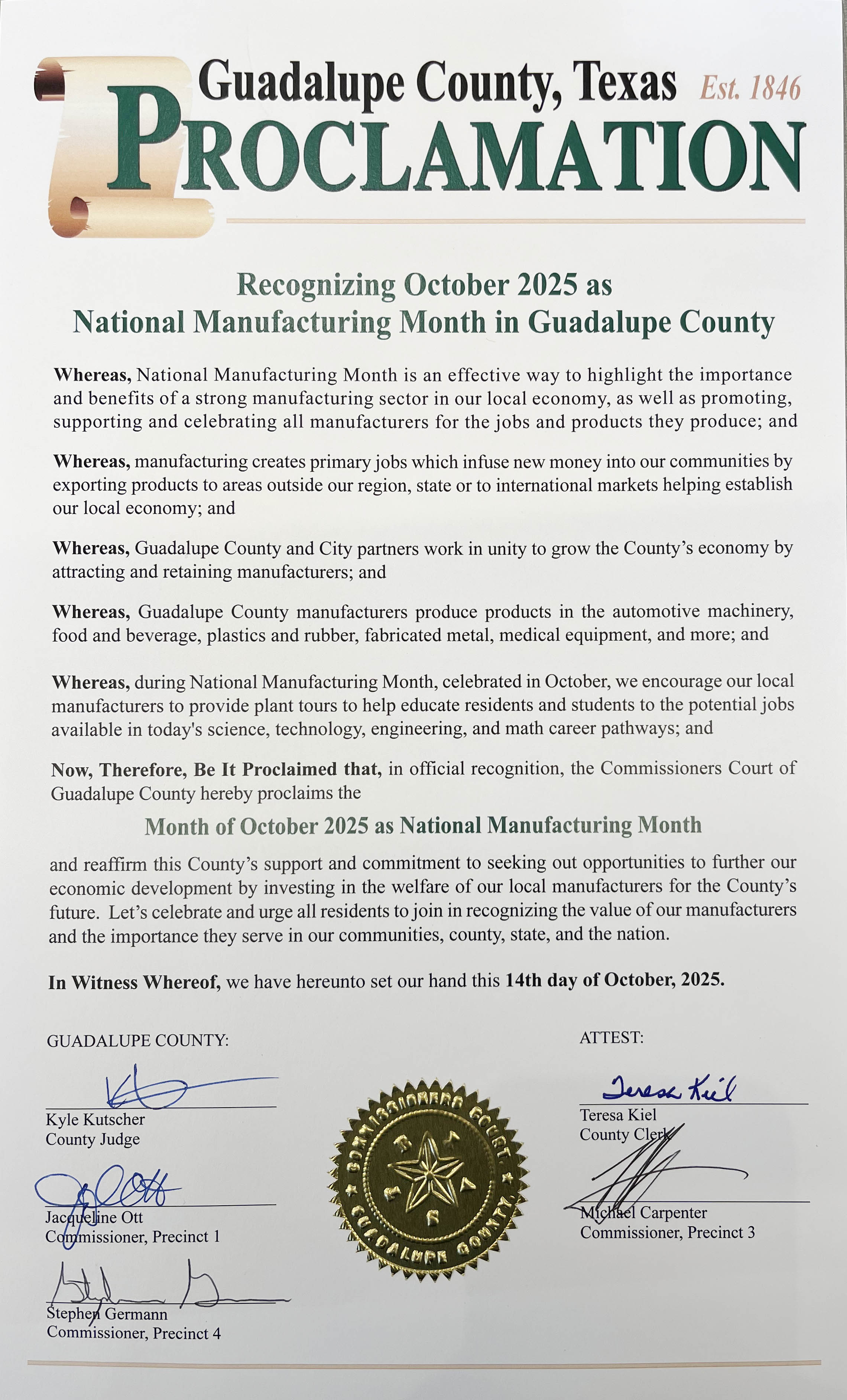 - Suggested verbiage for the proclamations.